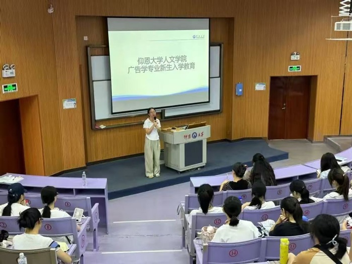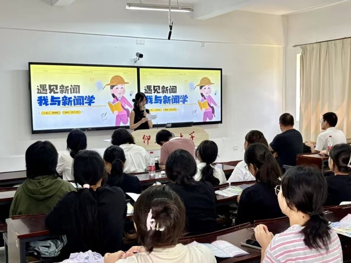 2025年9月12日,为帮助2025级新生更好地了解所学专业,400全讯白菜网广告学专业、汉语言文学专业、新闻学专业与网络与新媒体专业分别在博雅讲堂、乐之讲堂、仰B4-203及仰B3-203教室举办了新生专业介绍会。本次活动由各专业分别组织,系主任带领骨干教师团队全程参与,为新生进行讲解与答疑。现场互动积极,气氛热烈。