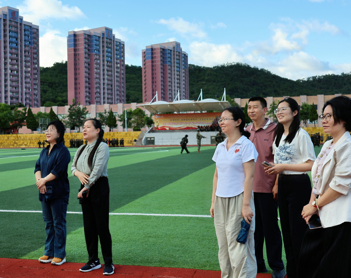 在军训现场,院领导们与新生互动交流,详细了解训练情况,并对同学们在军训中的表现给予充分肯定。党总支书记岳秀文高度赞扬了我院新生在军训拉练中展现出的坚韧精神,勉励同学们继续发扬人文学子攻坚克难的品质。院长欧怒鼓励同学们在锤炼体魄的同时,注重提升专业素养,为未来学习生活打下坚实基础。
