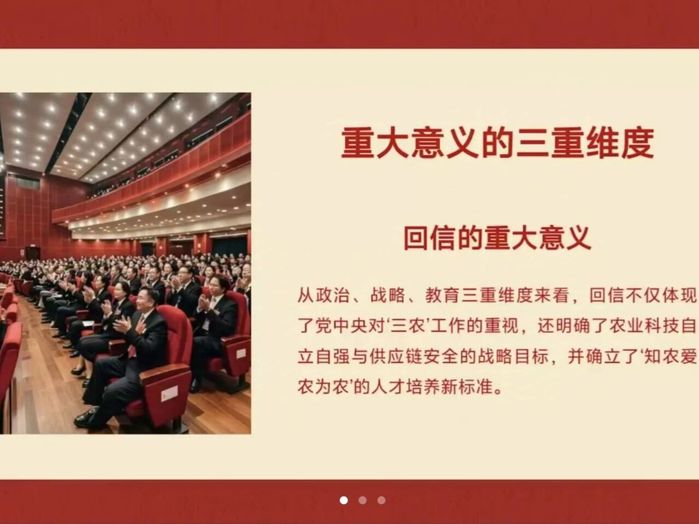此次学习会不仅推动学院学生深化对回信精神的理解,更凝聚起青年担当的共识。后续,学院学生会将以回信精神为指引,策划“三农”主题调研、乡村支教帮扶等实践活动,引导学生把理论学习成果转化为服务乡村振兴的实际行动,用青春力量为农业强国建设添砖加瓦。(佘晨露/文 朱麟璋/图)