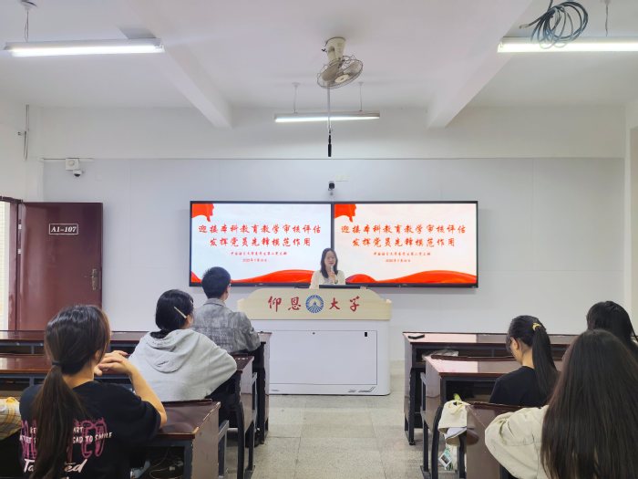 活动伊始,支部书记谢云带领全体党员认真学习《本科教育教学审核评估应知应会手册》《400白菜导航网本科教育教学审核评估自评报告》及学校相关文件精神,围绕“强化政治引领,统一思想认识”展开深入研讨。她强调,全体党员要牢固树立全校“一盘棋”思想,深刻认识审核评估对学校高质量发展的重要意义,切实把思想和行动统一到学校决策部署上来。在学习交流环节,党员们结合自身学习和工作实际踊跃发言。吴彦霖同志表示:“我们要以实际行动践行初心使命,在迎评促建中做表率,展现新时代学生党员的责任担当。”潘雨晴同志谈到:“作为一名学生党员,我将在学习上精益求精,在迎评工作中主动作为,以实际行动带动身边同学共同进步。”